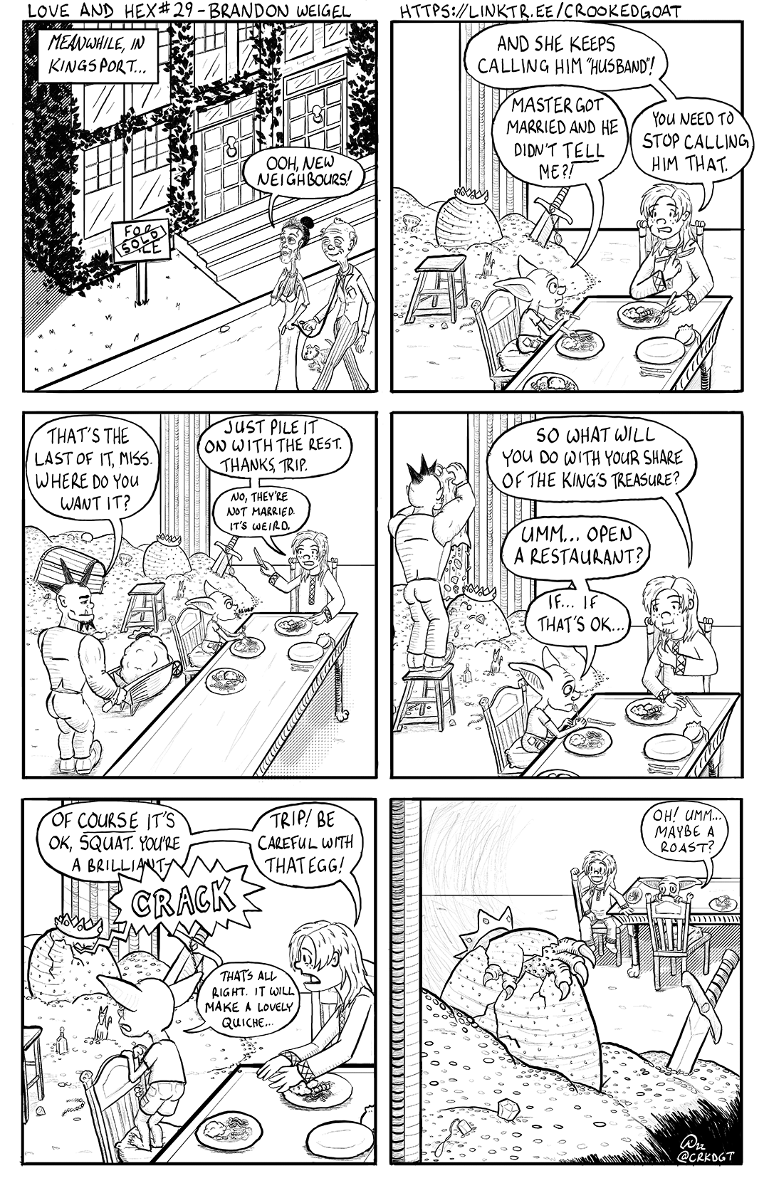 Just a little glimpse at what Tamilda's up to. If I ever get round to creating a separate comic for her, the time before and after this scene will be fleshed out somewhat. A little bit of lore about Squat is up on the Patreon post (https://www.patreon.com/posts/65597877/) if you want to find out who he is.