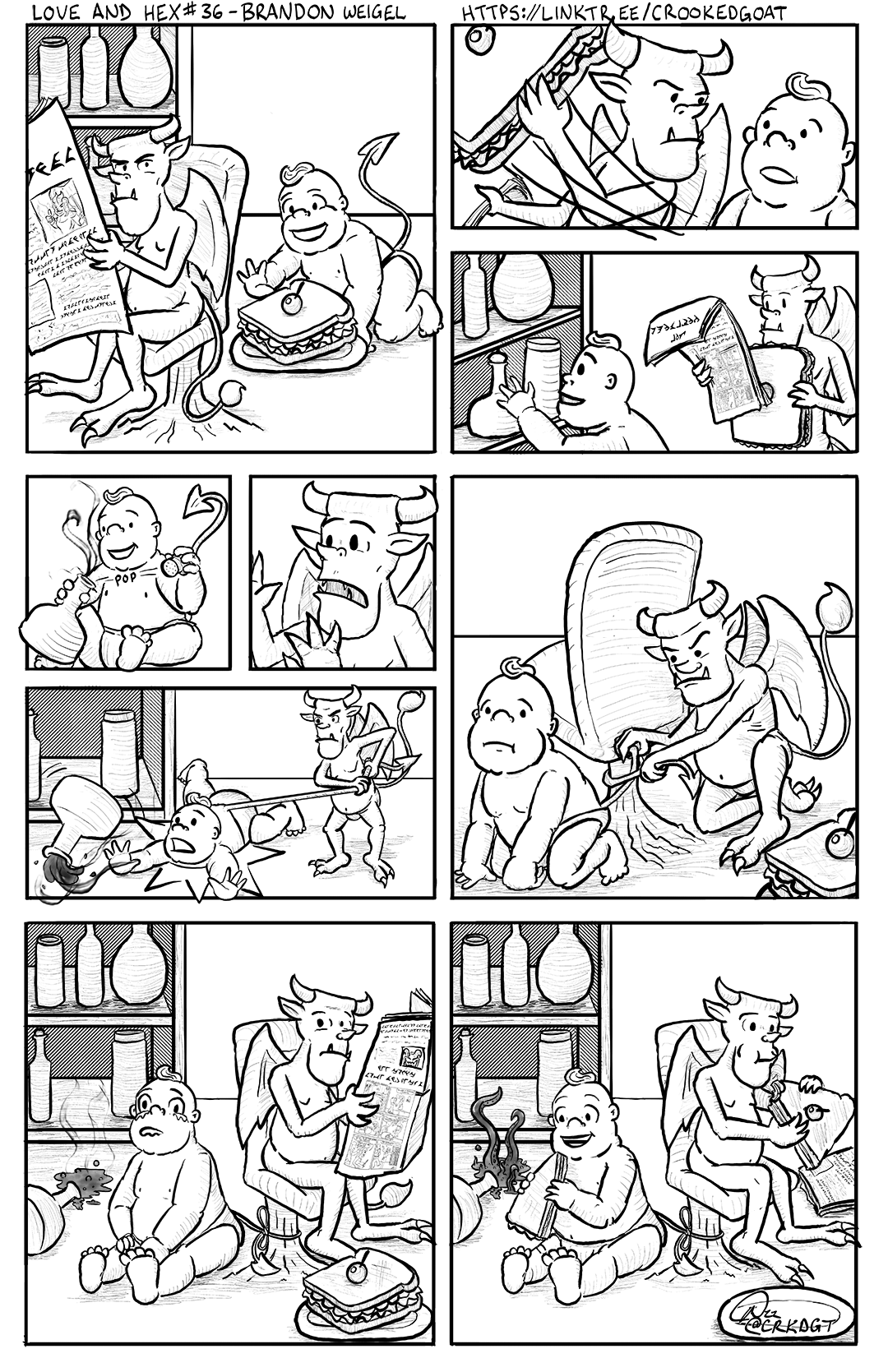 A bit of an experiment with a wordless comic, since neither the baby nor the imp do much talking. This one's more cute than funny, but it's what ended up in my head this week.