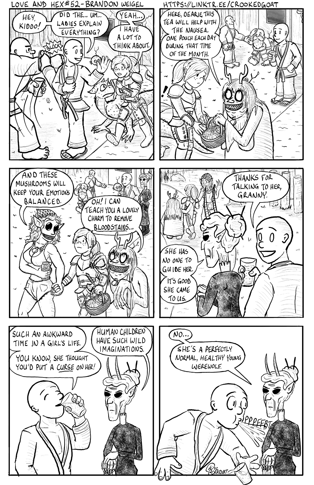 TranscriptSinging Cricket, entering, carrying a bag: Hi honey, I'm home! Kayra: Husband! (They kiss) Kayra: You were in town so long! I missed you. Kayra, examining the bag: Did you find everything on my list? Singing Cricket, sweating: Um, well... (The bag is emptied, revealing nothing but bottles of alcohol.) Kayra, annoyed: Again?! Singing Cricket, dejected: I'm sorry. And now there's nothing for dinner. Kayra, holding a key ring: Luckily, the butcher dropped by this morning. Singing Cricket: Great! What are we having? (A man in his underwear stands in a cage. Kayra looks happy, while Singing Cricket is horrified. Kayra: The butcher! |
