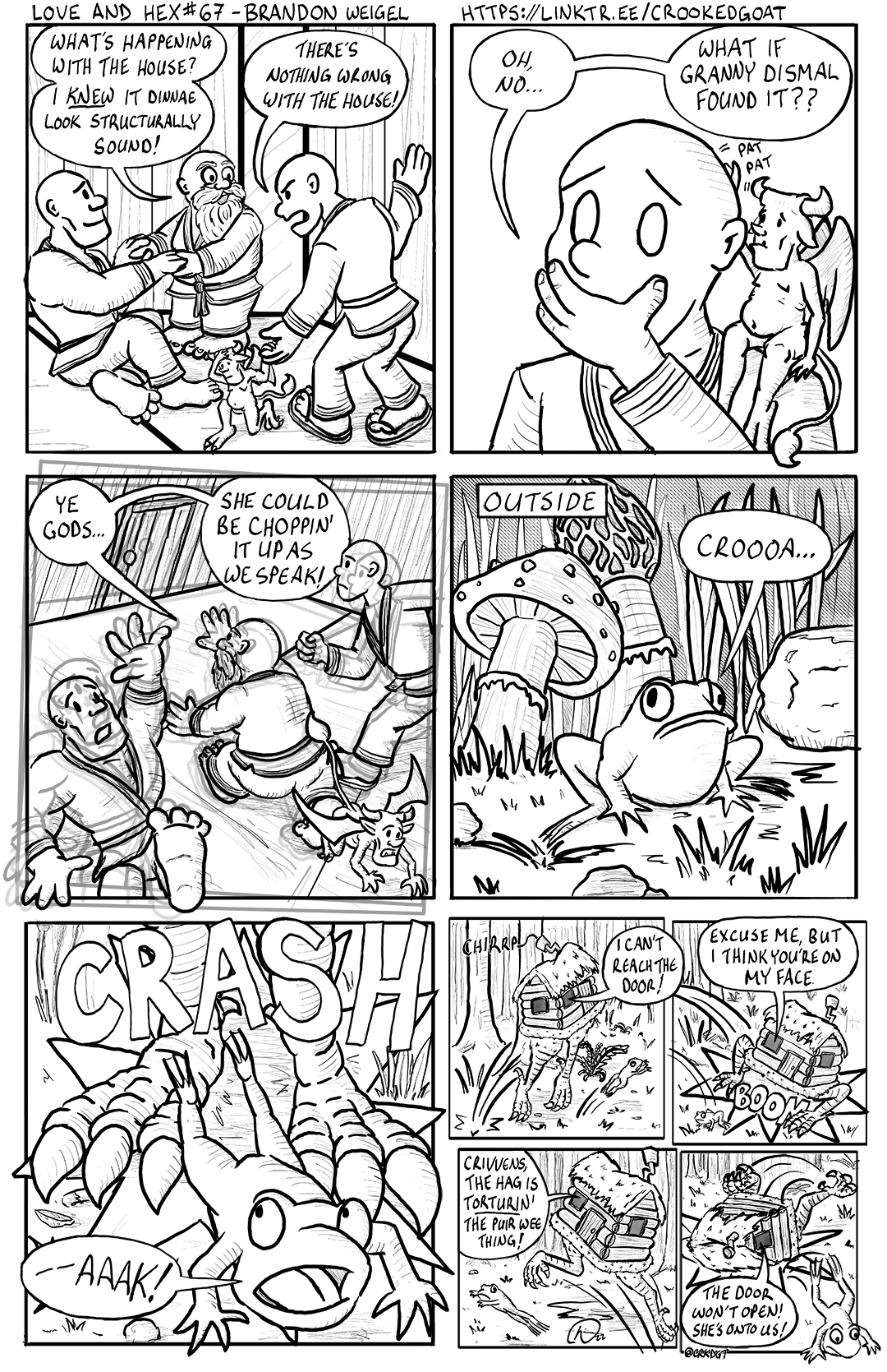 The frog leaps away, and the house jumps to follow. From the window: "Crivvens, the hag is TORTURIN' the puir wee thing!"