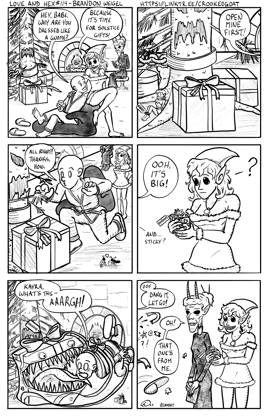 - Singing Cricket is lounging on his slime/chair, reading a book. Granny Dismal is reading on a stool in the background, next to the fire. A monstrous tree is chained up in the corner, with numerous wrapped gifts below it. Kayra comes in and sits on the edge of Singing Cricket's chair, dressed in a festive, fur-trimmed outfit.