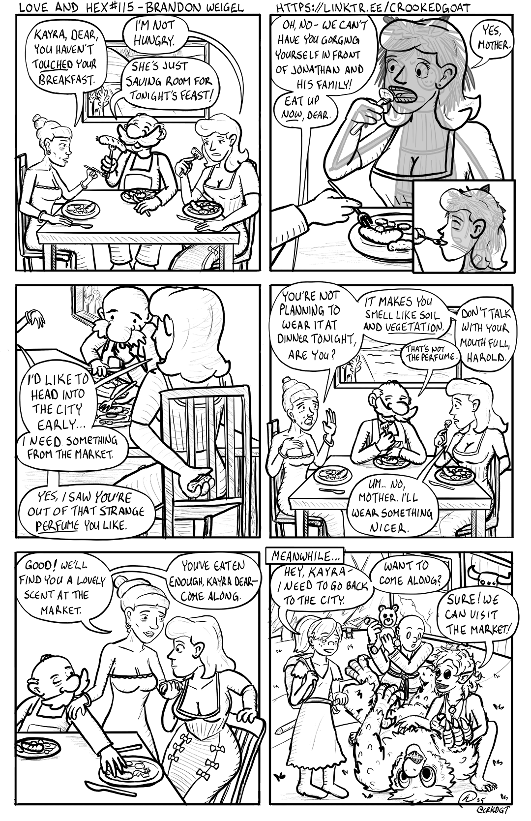 Changeling: "I'd like to head into the city early... I need something from the market." Mother (off-panel): "Yes, I saw you're out of that strange PERFUME you like."