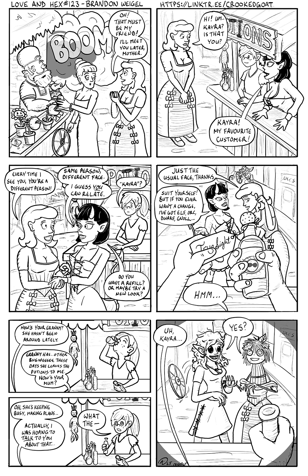 - Changeling Kayra tentatively approaches the potion stall, which is being staffed by real-Kayra (currently in disguise as a tiefling) and Tamilda.