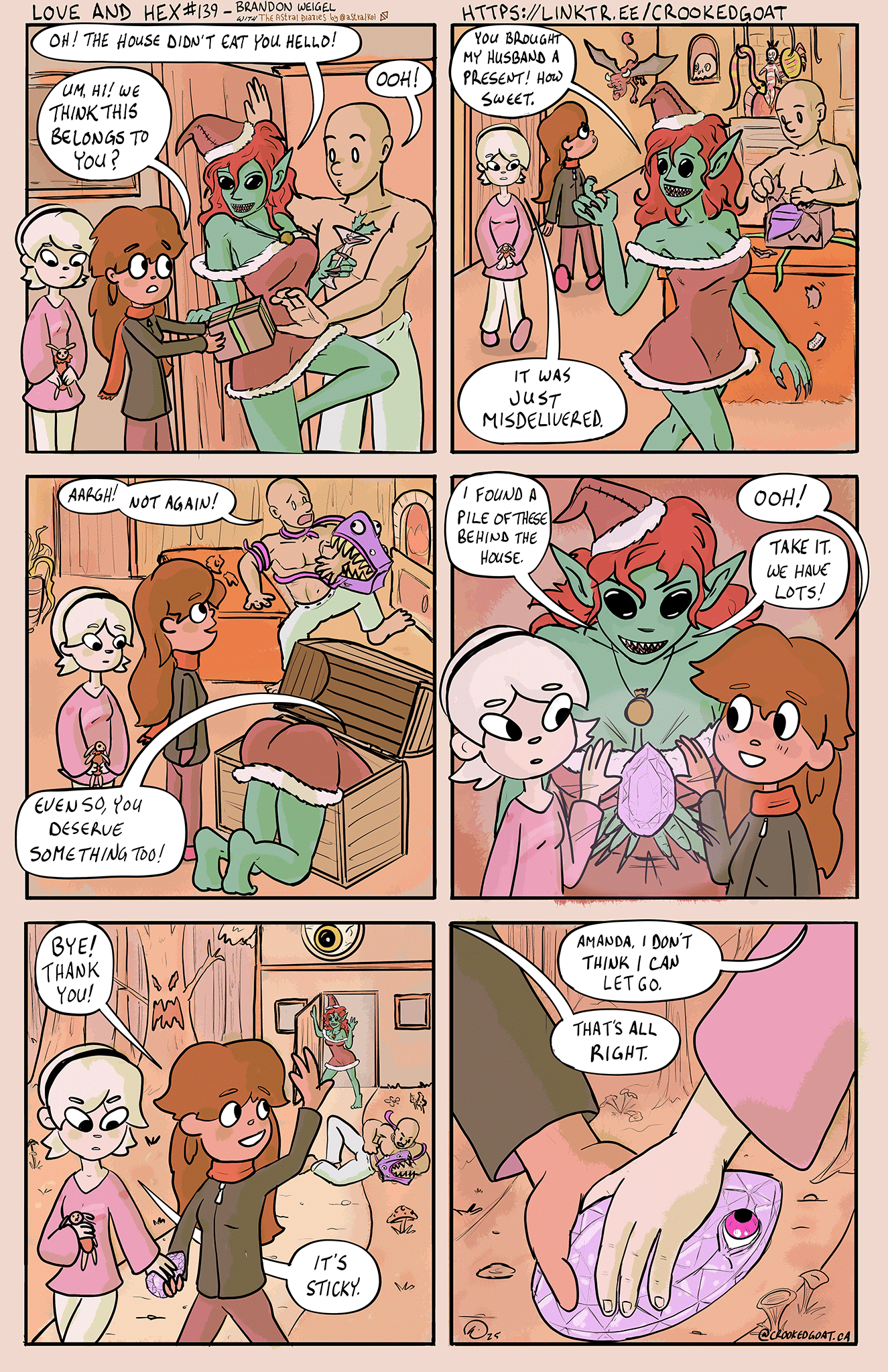 - Two girls, Amanda and Danna (from the webcomic The Astral Diaries) arrive at the door of Nanny Muk's house. Kayra answers, dressed in a fuzzy red suit and hat, sipping a holly martini. Singing Cricket is close behind, shirtless. The girls offer him a package; he eagerly accepts.