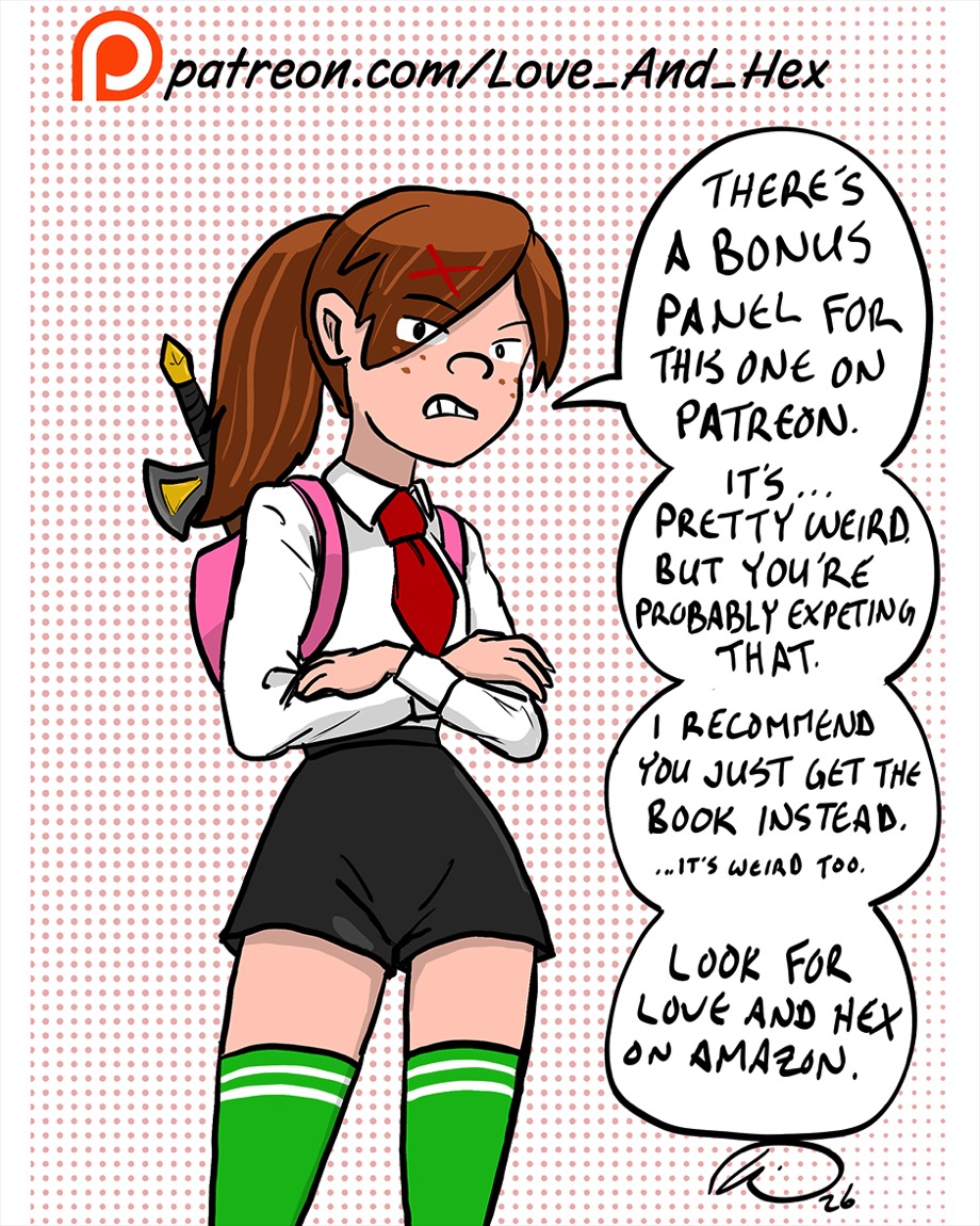 The prince stares sadly off after the departing girl. From below and off panel, the frog responds with "...".